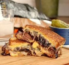 Chopped beef brisket, swiss cheese, sauteed french onions on toasted white bread.